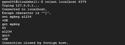 telnet localhost 6379 // 6379 포트와 연결된 redis 컨테이너 내부 접속