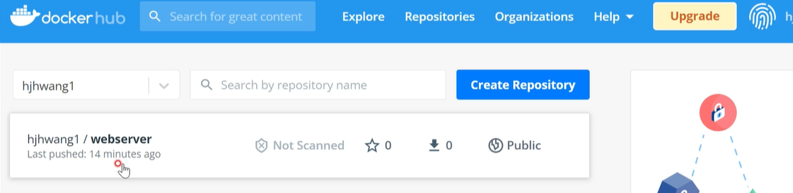 Docker Hub에 가입한 Username 과 저장소명이 동일해야 한다.