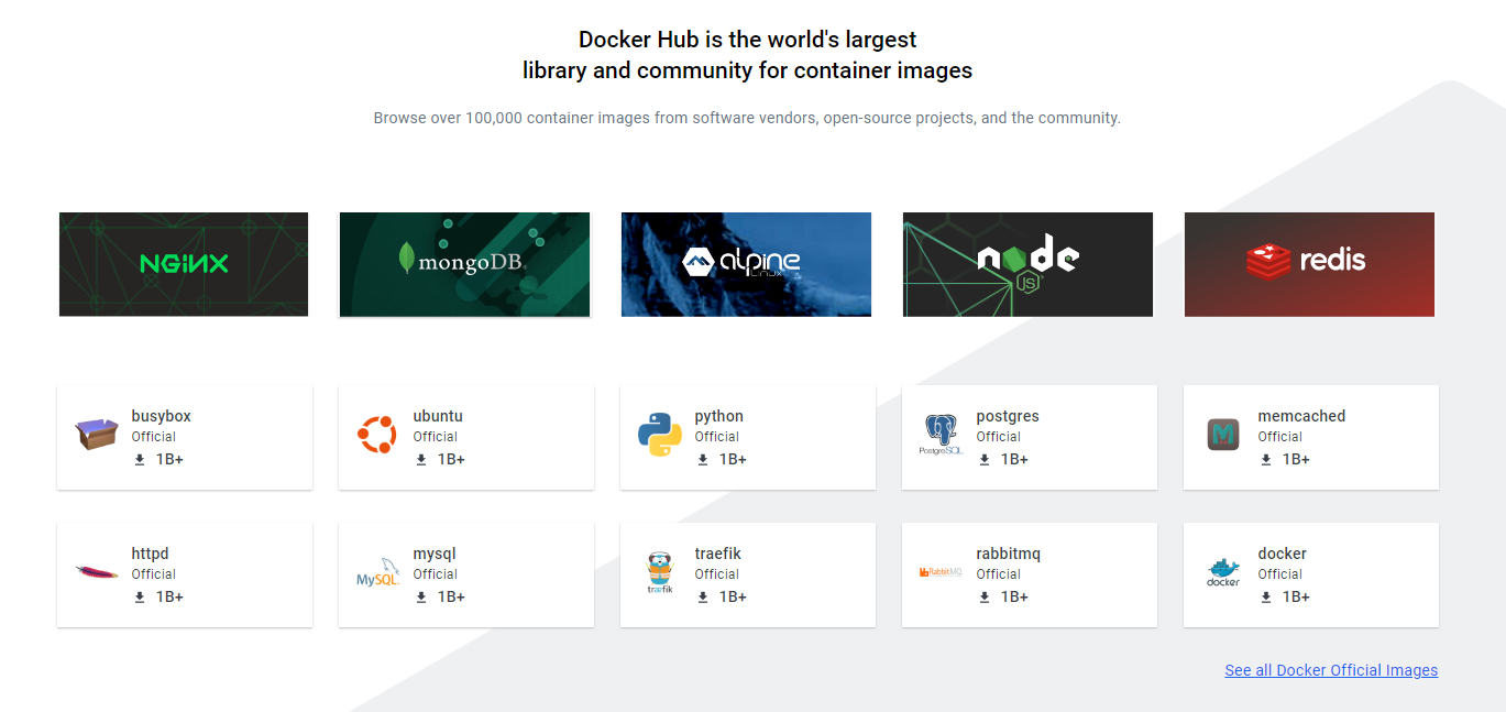 - 자주 사용하는 sw 도구를 해당 기업에서 official 이미지로 만들어 docker hub에 제공