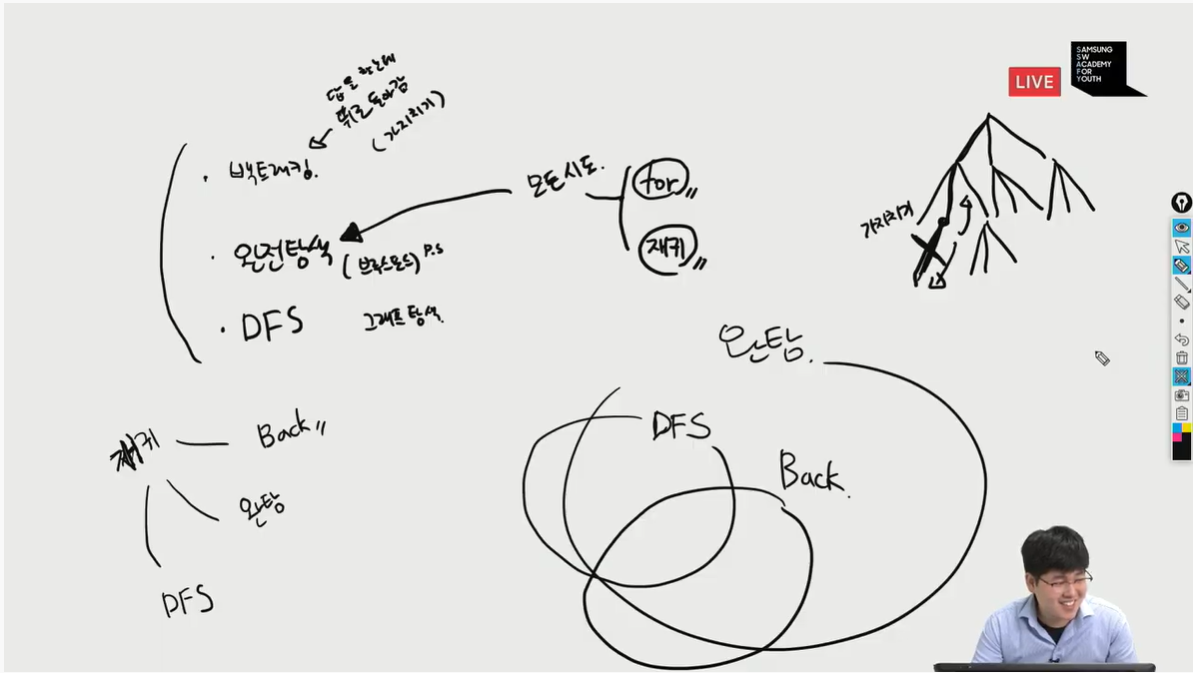 2. 완전탐색 : 일일이 하나씩 다 찾아봄 : for문 + 재귀 모든 방법으로 다 시도해보는것